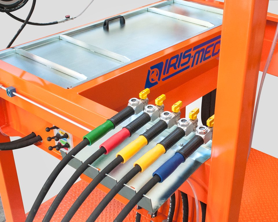 Stacja zawiera wszystkie urządzenia niezbędne do odzysku płynów, olejów i paliwa. Stojak na samochód (w modelu IBQ) oraz komplet pomp pneumatycznych z sondami i nawiertakami gwarantują maksymalną wydajność w konkurencyjnej cenie. Dodatkowy układ do wizualnej oceny jakości paliwa z dwoma przezroczystymi kolumnami umożliwia operatorowi ocenę odsysanego paliwa (paliwo najpierw wlewa się do kolumn) i skierowanie do odpowiedniego zbiornika magazynowego na dobrej lub złej jakości benzynę i olej napędowy. Standardowa wersja stacji osuszania posiada jeden nawiertak zbiorników paliwowych – zarówno metalowych, jak i plastikowych. Drugi nawiertak jest dostępny jako wyposażenie opcjonalne. Wszystkie wersje stacji osuszania posiadają zespół sond ssących z końcówkami odpowiednimi do każdego rodzaju płynu i oleju. Kolor sond odpowiada kolorowi pompy pneumatycznej dedykowanej do konkretnego płynu i oleju: płyn wycieraczek, płyn chłodniczy, płyn hamulcowy, olej silnikowy/przekładniowy. Ruchome, nastawne ramie z misą na olej silnikowy służy do zbierania oleju silnikowego i przekładniowego, a następnie pompa pneumatyczna przepompowywuje olej do zbiornika magazynowego.